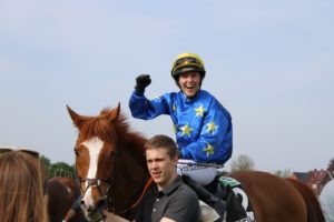 Ik blik heel tevreden en dankbaar terug op het vorige seizoen van Waregem met veel onvergetelijke momenten. Daar hoort ongetwijfeld ook de 100ste overwinning van mijn carrière bij. Dit was met First Condé, een paard van heel leuke eigenaars dat me nauw aan het hart ligt. Een groot deel van mijn familie was die dag ook aanwezig op de hippodroom, wat het moment extra bijzonder maakte. Ook het kunnen winnen van zowel de eerste als de laatste galopren van het seizoen was erg leuk. Het strijden voor winst in de Jockeys Challenge gaf me ook een motivatieboost en zorgde voor een extra leuke sfeer.